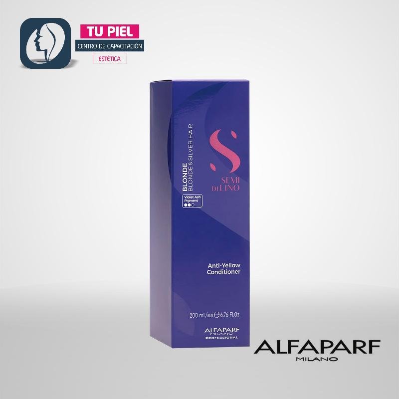 El acondicionador matizador neutraliza tonos amarillos no deseados en cabellos rubios, platinados o grises; desenreda suavemente, nutre la fibra capilar y aporta vitalidad sin apelmazar.