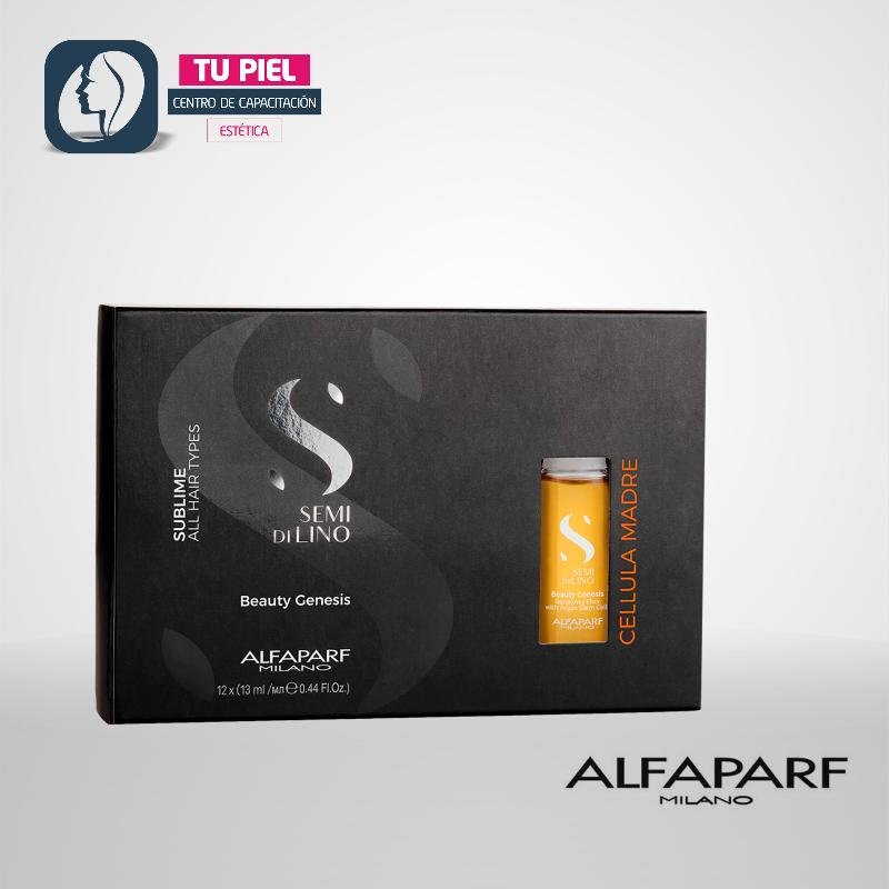 El elixir concentrado Alfaparf Milano Semi di Lino Sublime Cellula Madre Beauty Genesis nutre y revitaliza el cabello, aportando luminosidad, protección del color y una textura visiblemente más saludable.