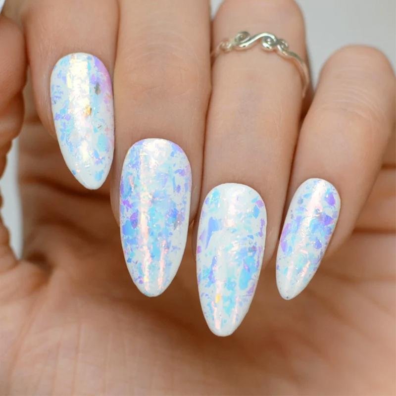 Los Polvos Flakes son el aliado perfecto para crear diseños únicos y sorprendentes. Su textura ultrafina y reflectante los hace ideales para agregar un toque de brillo y dimensión a cualquier técnica de nail art. Podés aplicarlos sobre la capa de inhibición de cualquier Gel Color o encapsularlos para un acabado más sofisticado.
