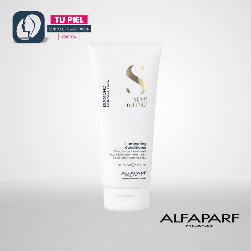 El acondicionador Alfaparf Milano Semi di Lino Diamond Illuminating Conditioner desenreda eficazmente el cabello, aportando un brillo intenso y una textura suave y ligera. Su fórmula profesional ayuda a mantener la luminosidad y vitalidad de la fibra capilar.