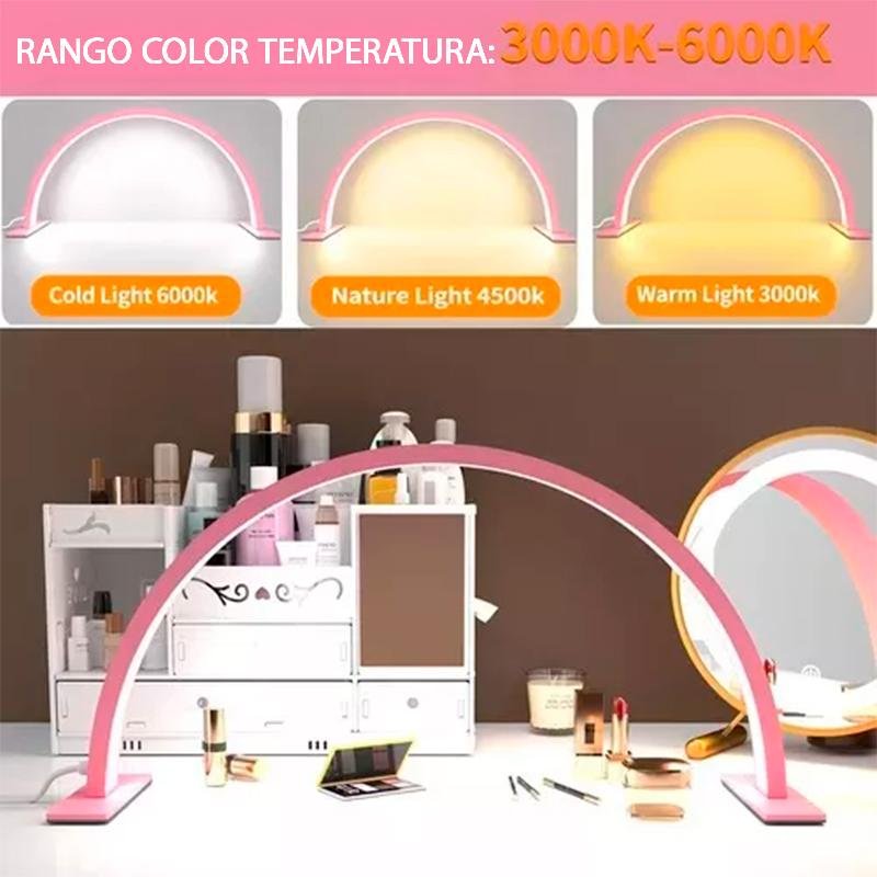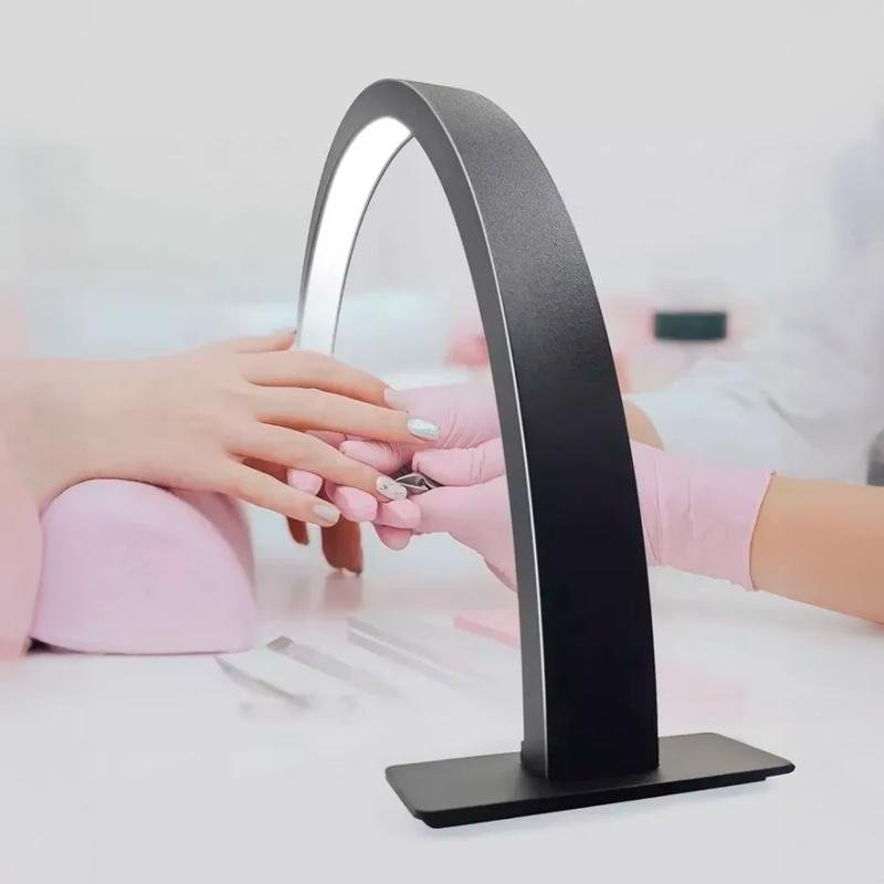 Iluminá tu espacio de trabajo con estilo y eficiencia. Esta lámpara LED en forma de media luna es ideal para mesas de manicura, diseño de pestañas, maquillaje o cualquier actividad que requiera iluminación uniforme, clara y sin sombras.