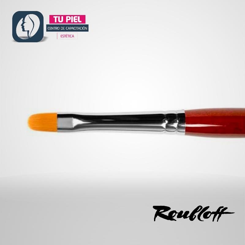 El pincel está hecho de material sintético rojo elástico; su forma ovalada permite trazar con cuidado la línea de la cutícula.