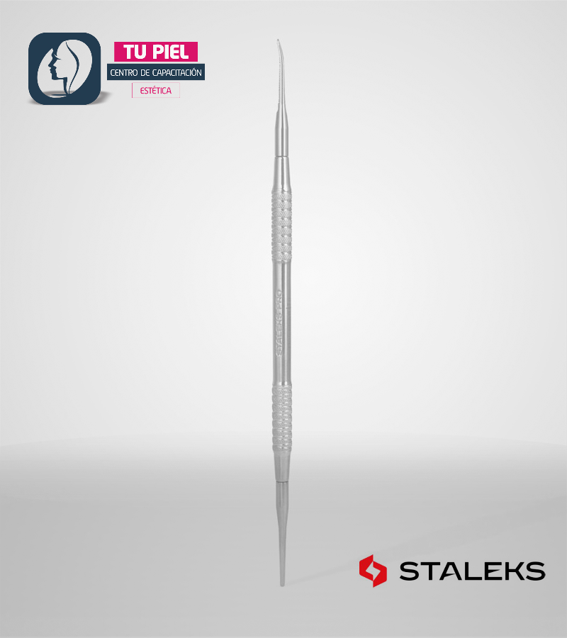 - La parte de trabajo empujador de tamaño ampliado está diseñada para levantar y empujar la cutícula hacia atrás.