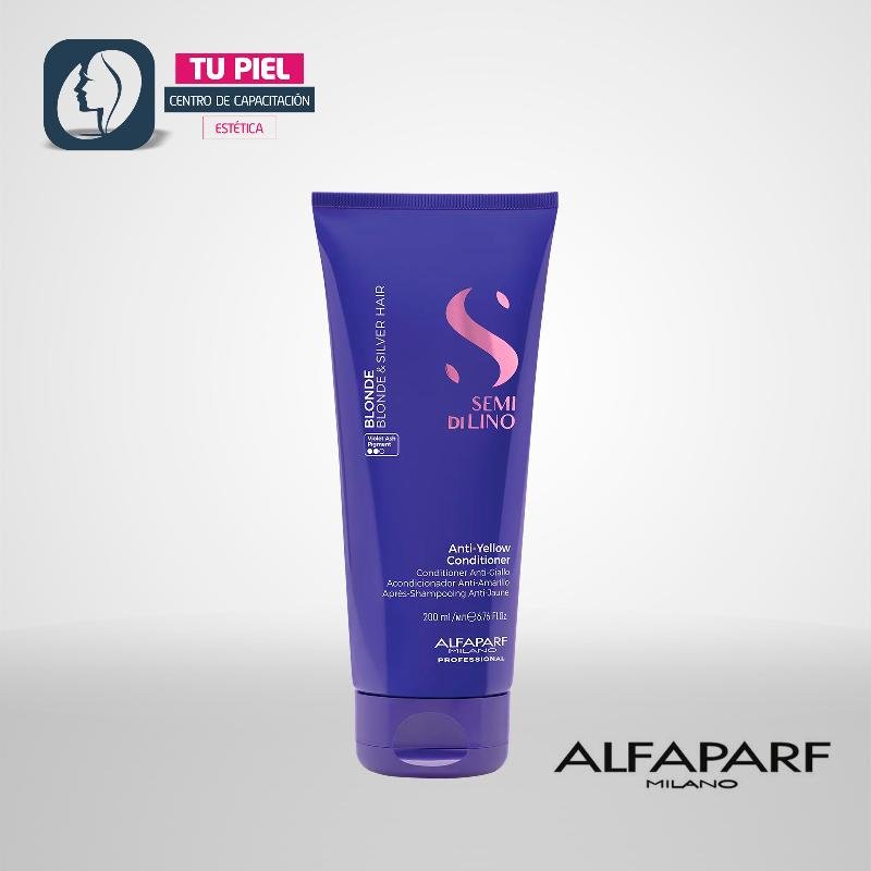 El acondicionador matizador neutraliza tonos amarillos no deseados en cabellos rubios, platinados o grises; desenreda suavemente, nutre la fibra capilar y aporta vitalidad sin apelmazar.