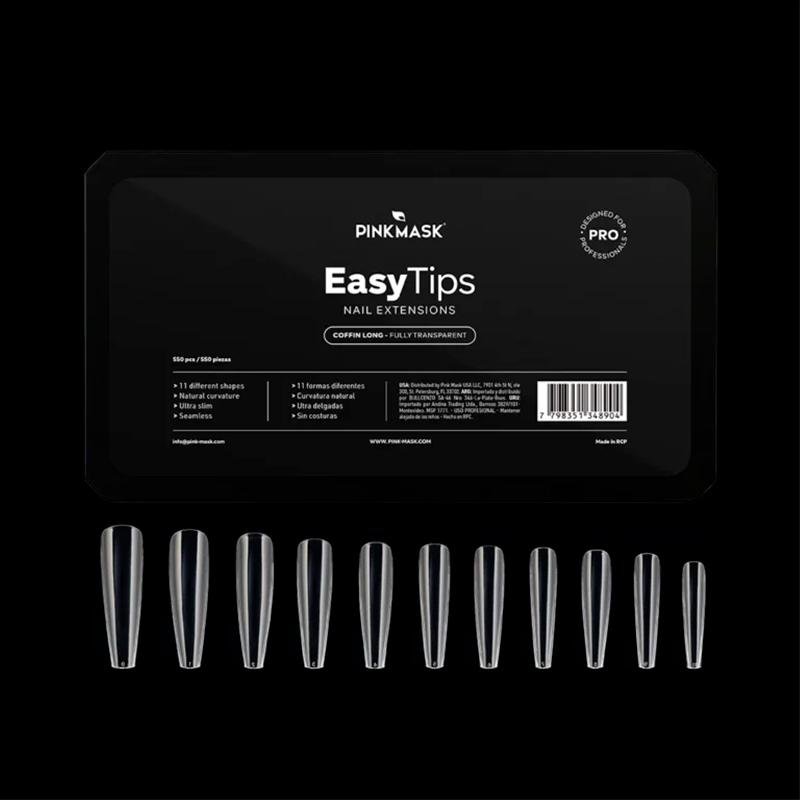 Tips de gel transparentes ideales para trabajos de extensión soft gel o press on. Producto soak-off. Presentación disponible en caja de 550 piezas con 11 tamaños diferentes, del 0 al 10. Curvatura natural, ultra delgadas p...