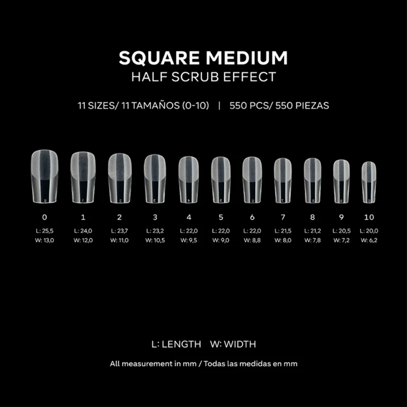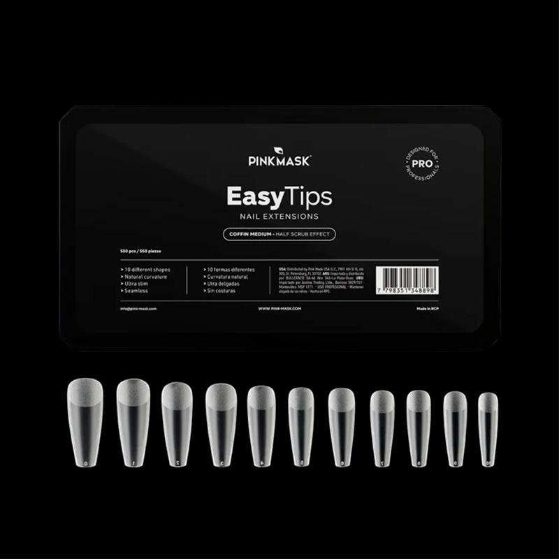 Tips de gel prelimados con acabado mate, ideales para trabajos de extensión soft gel o press on. Producto soak-off. Presentación disponible en caja de 550 piezas con 11 tamaños diferentes, del 0 al 10. Curvatura natural, u...