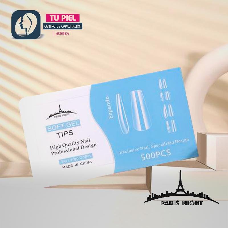 TIPS PRESS ON || SOFT GEL COFFIN TRANS LARGE x500pcs EN CAJA