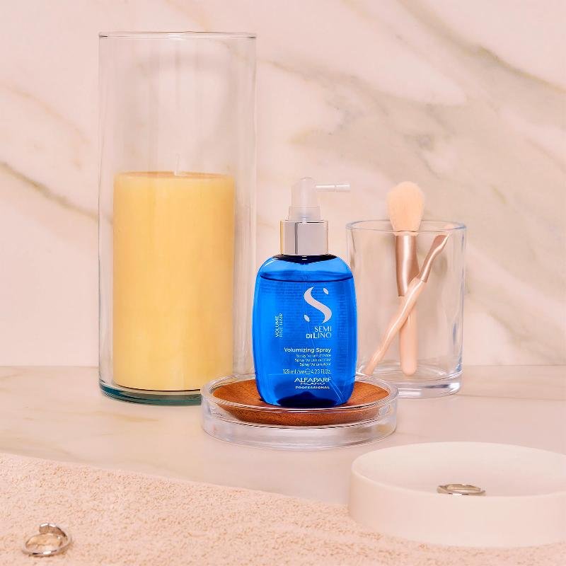 El spray voluminizador Alfaparf Milano Semi di Lino Volume Volumizing Spray aporta cuerpo y espesor a la fibra capilar, con fijación flexible para un efecto volumen duradero sin dejar el cabello rígido.